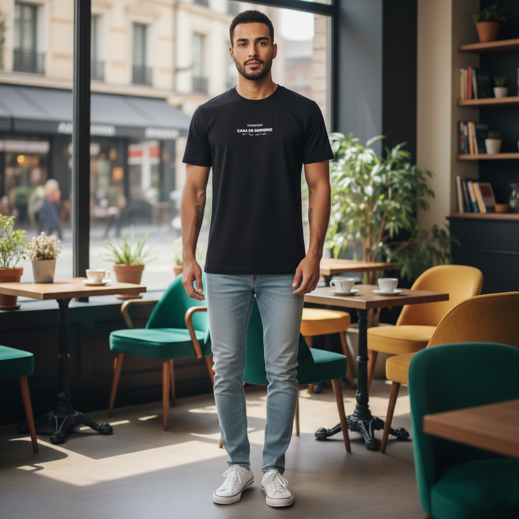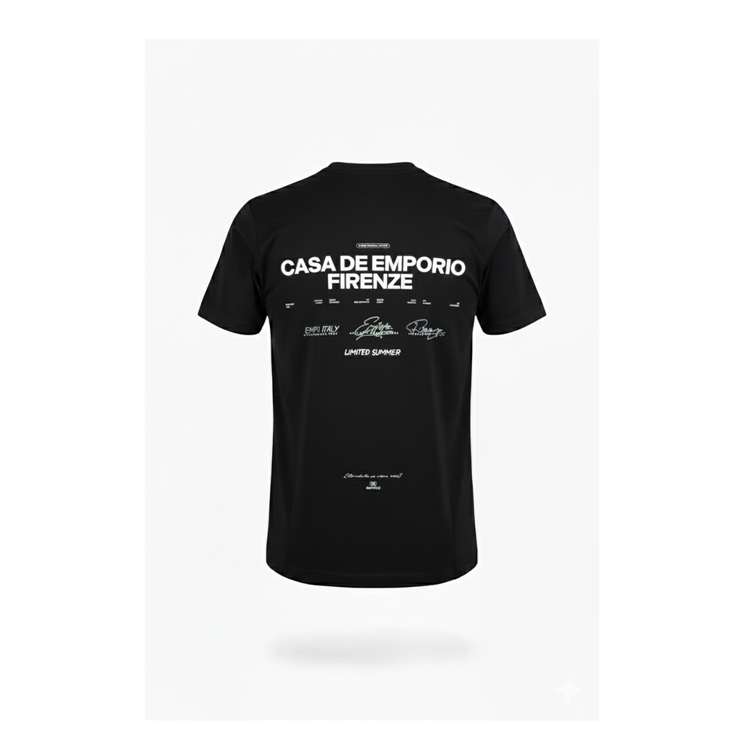 levate your everyday style with our Emporio Valentino Black Graphic Tee. Designed with a bold CASA DE EMPORIO FIRENZE print front and back, this soft short-sleeve tee offers a modern, clean look that pairs effortlessly with jeans or shorts.