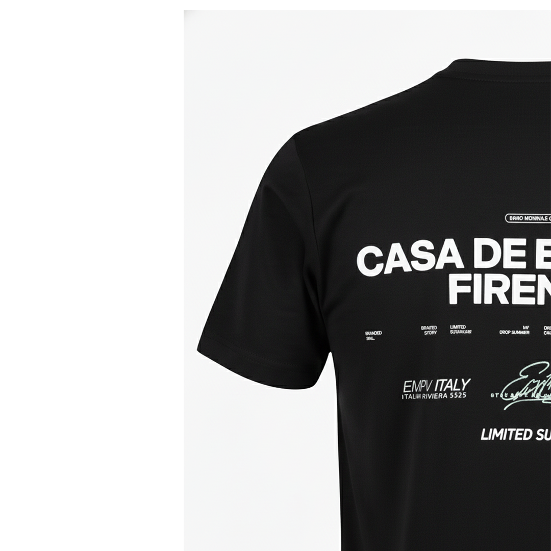 Elevate your everyday style with our Emporio Valentino Black Graphic Tee. Designed with a bold CASA DE EMPORIO FIRENZE print front and back, this soft short-sleeve tee offers a modern, clean look that pairs effortlessly with jeans or shorts.