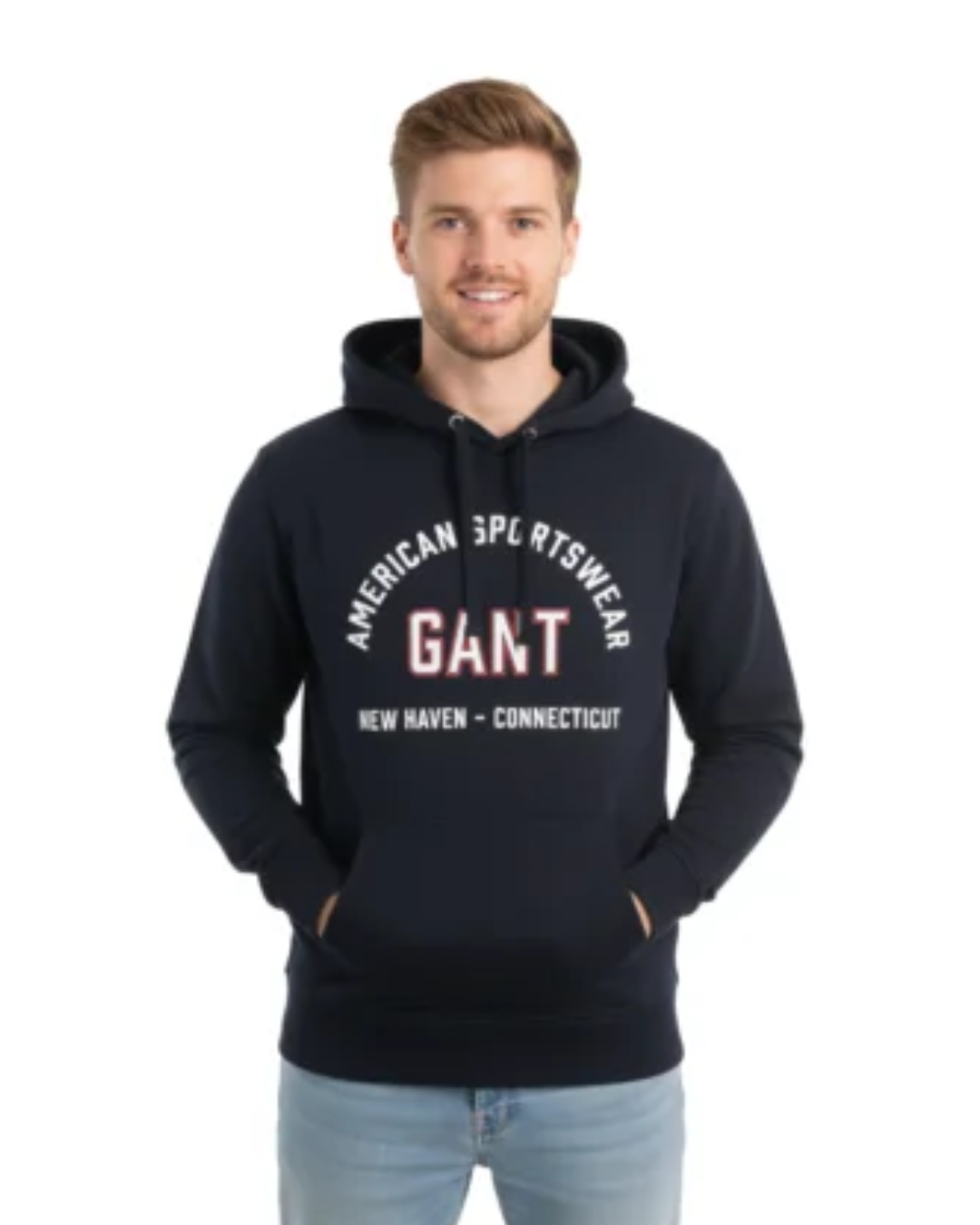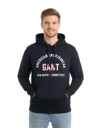 Upgrade your everyday style with the GANT American Sportswear Hoodie — a timeless classic that blends comfort, quality, and effortless style. Featuring a rich navy color and bold front print showcasing “American Sportswear – New Haven, Connecticut,” this hoodie delivers a clean, athletic look perfect for any casual outfit.