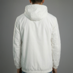 Featuring an adjustable hood, full front zipper, and black logo-taped detailing along the zipper and pockets, it adds a sharp street-style edge to a minimalist design. The elastic cuffs and hem ensure a secure and comfortable fit, while the zippered side pockets provide convenient storage on the go.