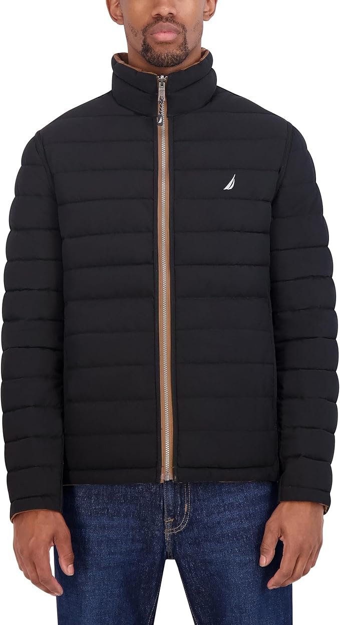 Designed for versatility and everyday winter warmth, the Nautica Double Face Puffer Jacket offers two stylish looks in one essential outerwear piece. Featuring a reversible design with a classic black exterior and a warm caramel-brown interior, it delivers effortless style with added functionality.