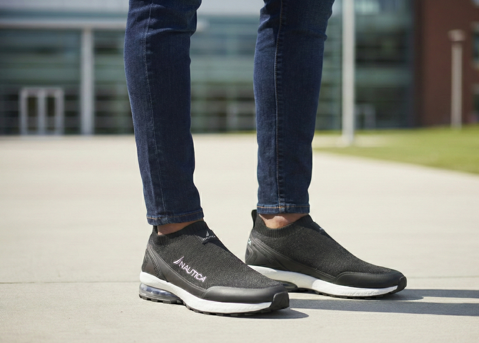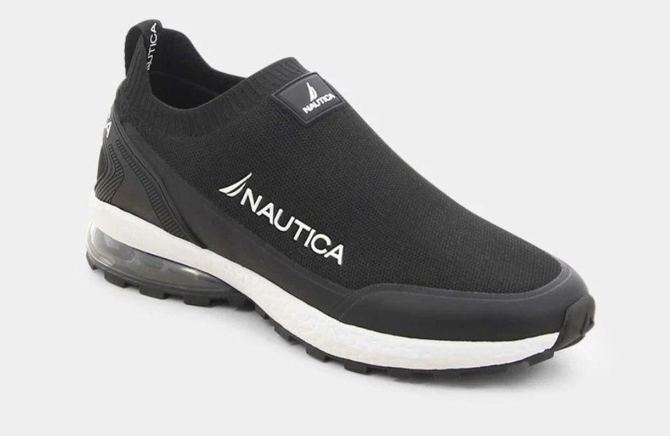 Designed for effortless wear and modern everyday style, the Nautica Sneaker Shoe delivers lightweight comfort with a sleek, sporty edge. Featuring a breathable black knit upper and a convenient slip-on design, it offers easy wear with a secure, flexible fit.