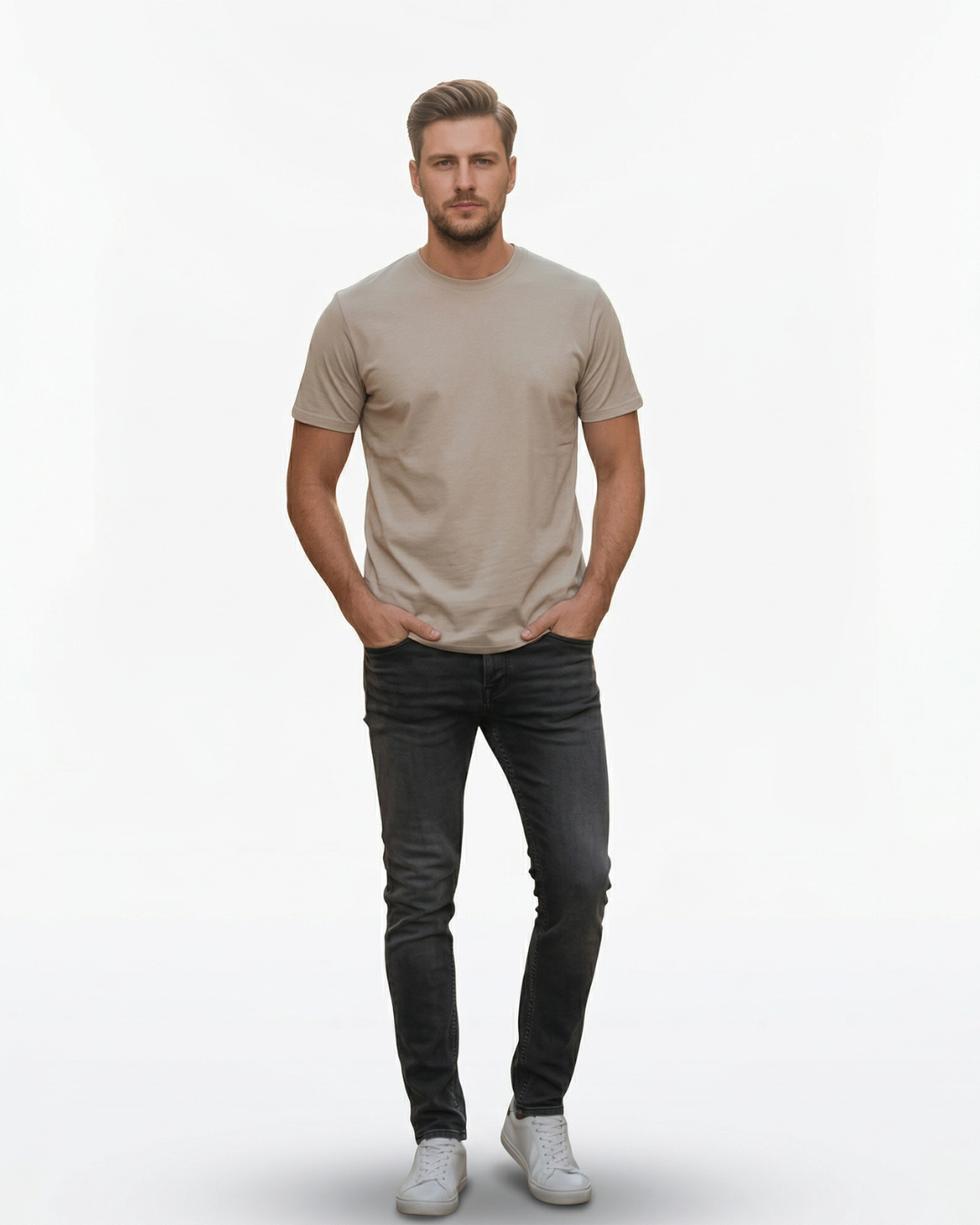 Elevate your everyday style with our ROBERTO VINO Beige Signature Script Tee. Designed with a clean front and an all-over tonal script print on the back, this short-sleeve tee offers a refined yet modern look. Crafted from soft, breathable fabric, it delivers all-day comfort and a relaxed fit—perfect for pairing with jeans, shorts, or chinos for an effortless casual outfit.