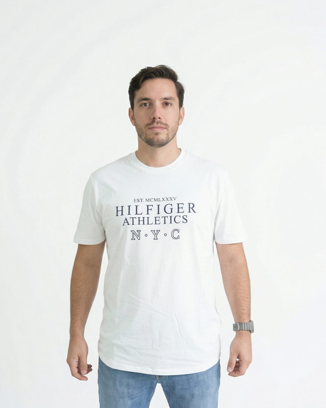 Featuring a bold HILFIGER ATHLETICS NYC graphic across the chest, this classic short-sleeve tee delivers a clean, sporty look inspired by vintage athletic style. Made from soft, breathable fabric, it offers all-day comfort and an easy, relaxed fit—perfect for pairing with jeans, shorts, or joggers for a fresh everyday outfit.
