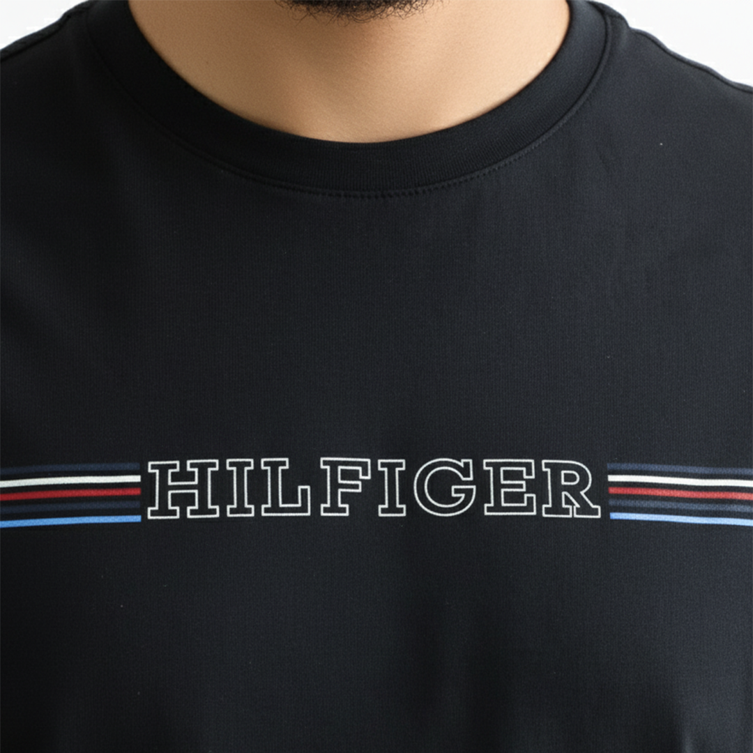 Designed with the iconic HILFIGER logo and signature red, white, and blue chest stripes, this short-sleeve tee delivers a clean, modern look that never goes out of style. Crafted from soft, breathable fabric, it offers all-day comfort and an easy, relaxed fit—perfect for pairing with jeans, shorts, or joggers for a polished, casual outfit.